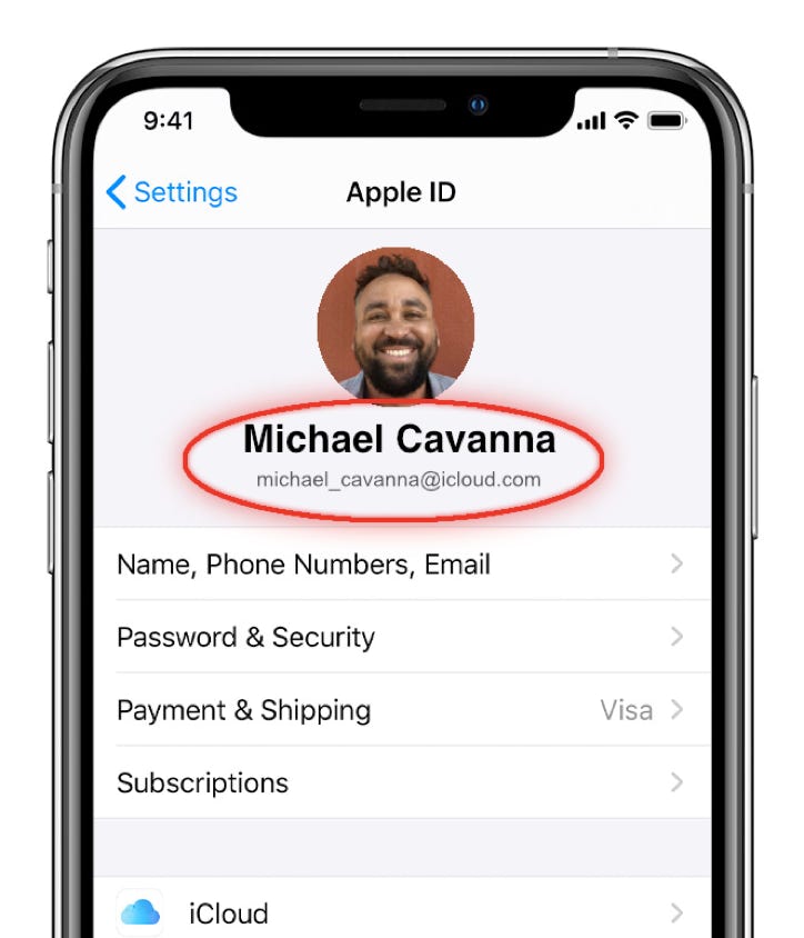• On your iOS device, open the Setting app then tap your name at the top and confirm the same account is logged in.