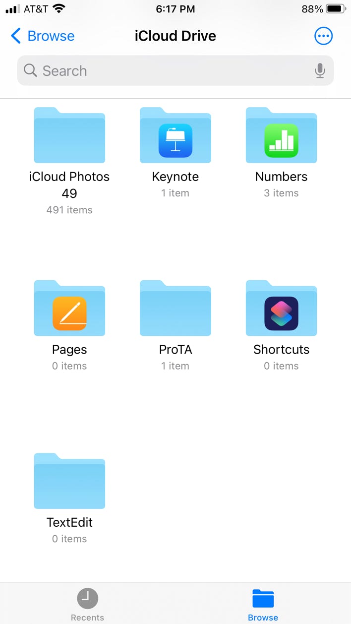 • On your iOS device, open the Files app. Scroll to find a folder named ProTA and tap it.