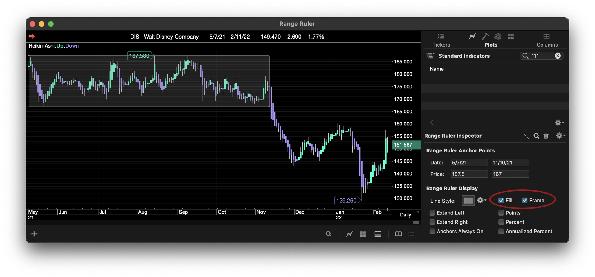 * The Range Ruler Line Study can now render as a framed, and optionally filled, rectangle shape to better highlight trading ranges within a chart.
