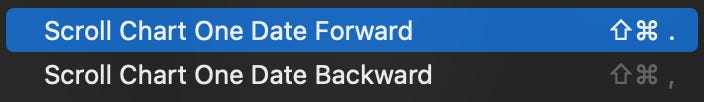 * Added Scroll Chart One Date Forward/Backward commands to the Charts menu as well as mouse-clickable areas on the left and right sides of the Time (X) Axis.